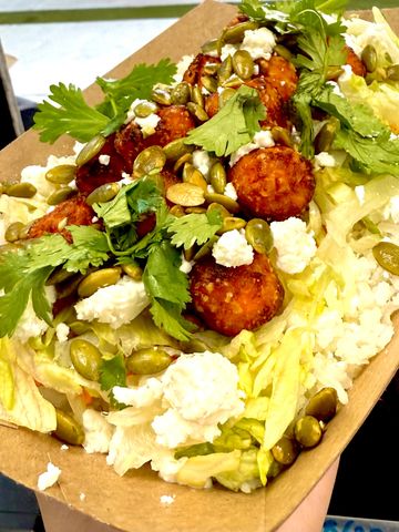 *Goat Cheese, Romesco Sauce, Lettuce, Roasted Pepitas, Cilantro.